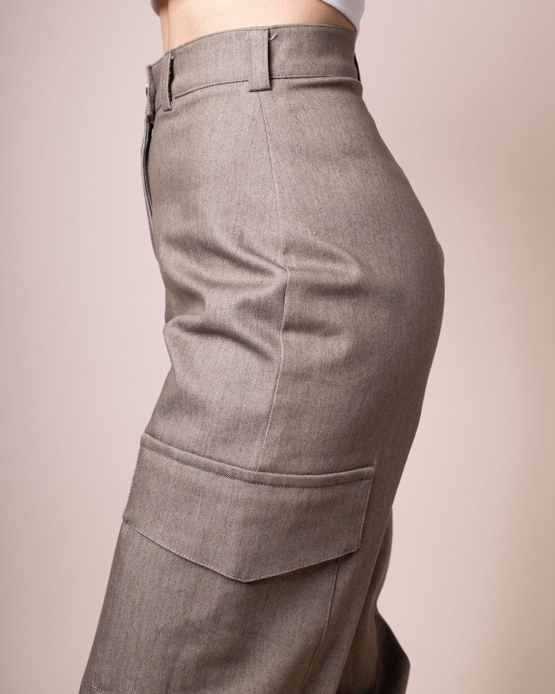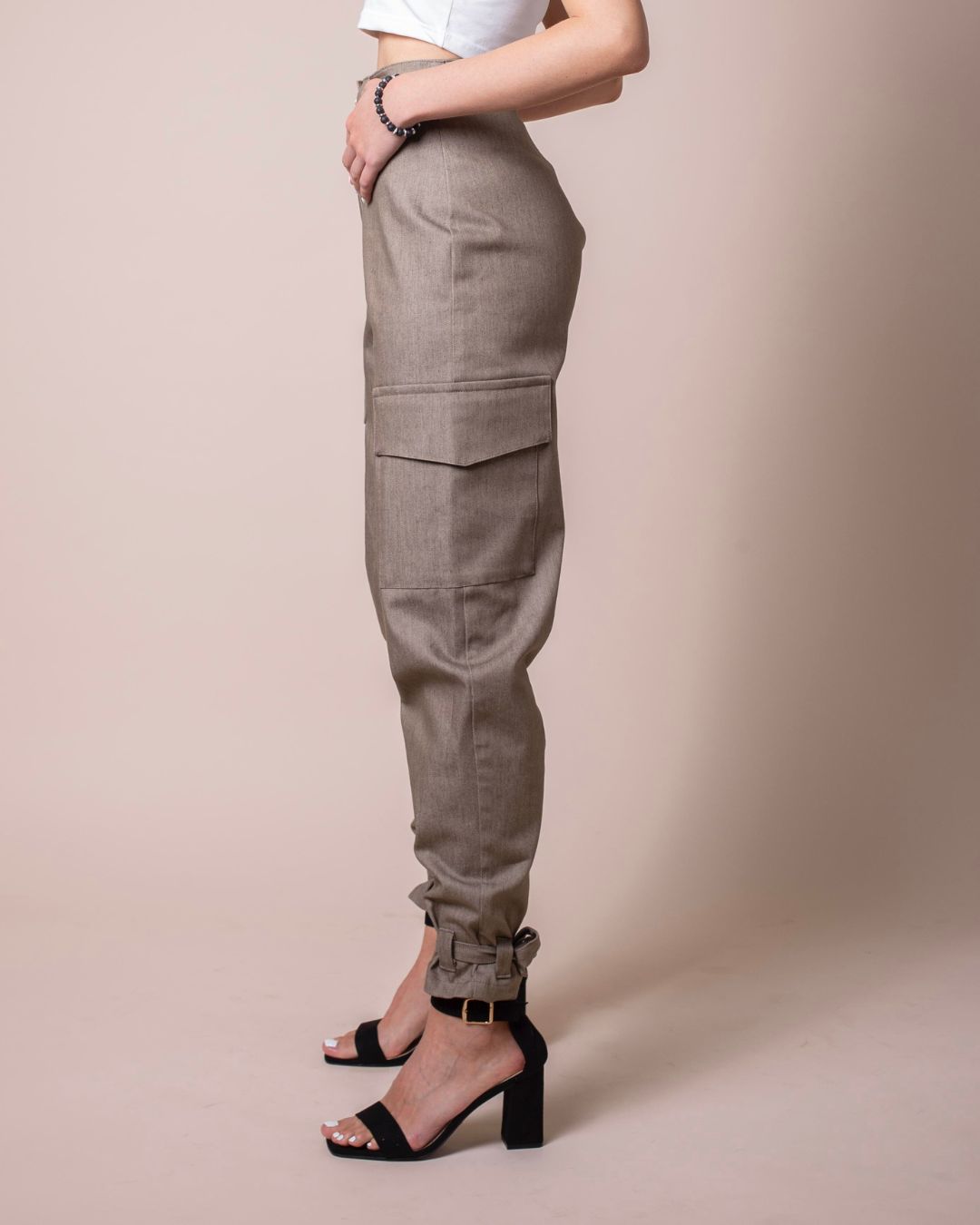 Khaki színű, cargo farmer nadrág, magasított derékkal